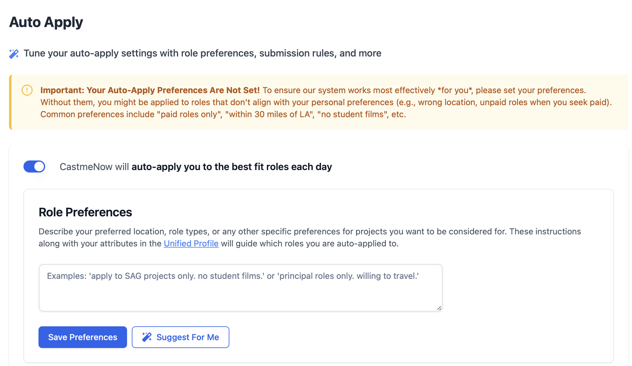 We noticed that many users weren’t setting up their auto-apply preferences, leading to mismatched submissions. Now, during onboarding, you’ll be redirected to the Auto-Apply Preferences page. Take a moment to refine your preferences so we can focus on roles that align with your goals.